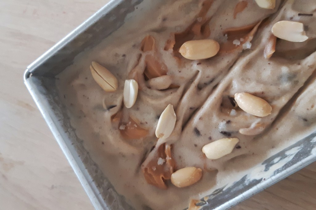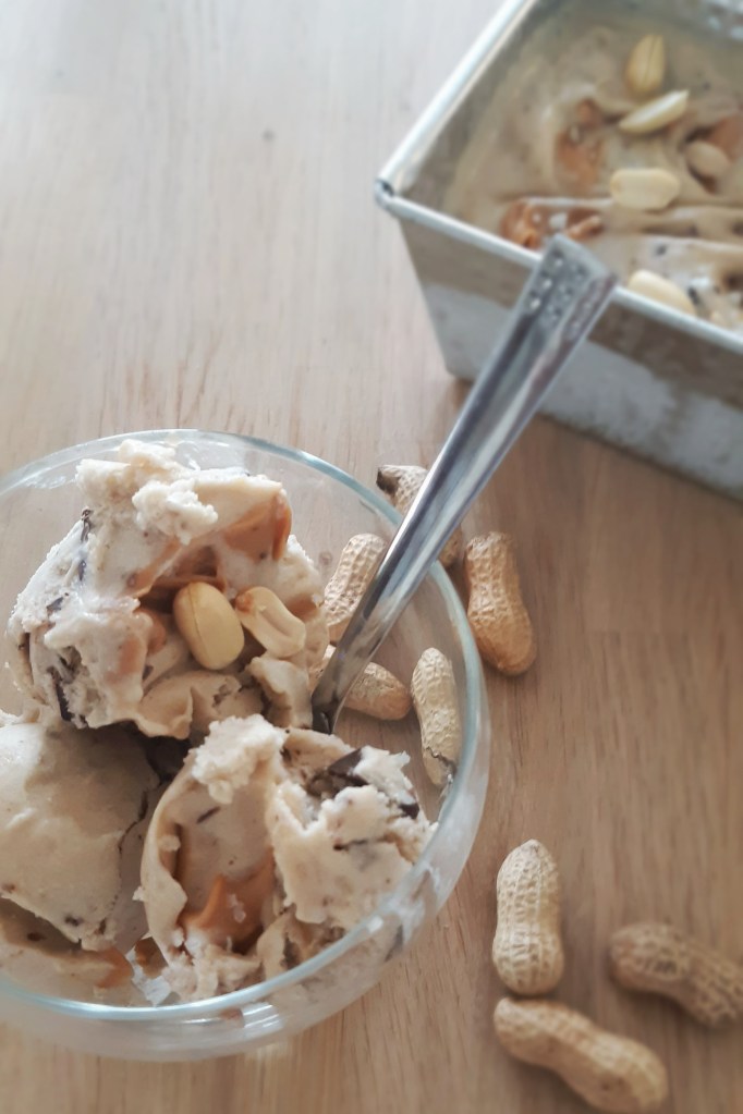 Une crème glacée à la banane et au beurre de cacahuète sans sorbetière, cette recette de Nice cream fera de vos rêves de dessert une réalité! Avec seulement 4 ingrédients, cette glace est sans produits laitiers, végan et prête en moins de 10 minutes. A servir immédiatement ou à congeler pour plus tard!
